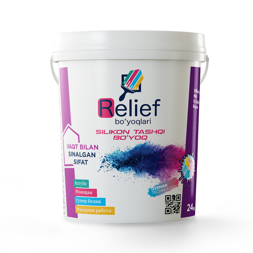 RELIEF DESIGN — интерьер ва экстерьер деворлари учун мўлжалланган юқори сифатли декоратив эмульсия. У юзада чиройли релеф (ҳажмли) фактура ҳосил қилиб, замонавий ва эстетик дизайн ечимларини яратиш имконини беради.